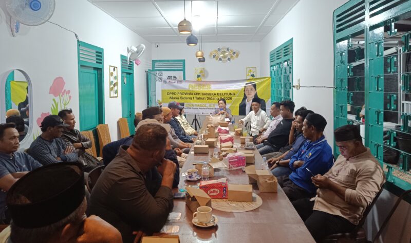 TOBOALI – Anggota DPRD Provinsi Bangka Belitung dari Komisi II, Rina Tarol melaksanakan kegiatan reses Masa Sidang I Tahun Sidang II 2026 di Kabupaten Bangka Selatan, Sabtu malam (17/1/2025) di Toboali.